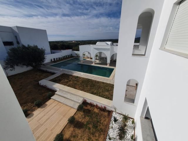 A vendre chez l’agence TPS Immobilière Hammamet, une superbe villa de très haut standing nouvellement construite avec des matériaux raffinés, bois noble, sanitaire de qualité, située à 8 km d’Hammamet et pas loin de la zone sidi hamamed, un mélange entre le style contemporain et traditionnel.