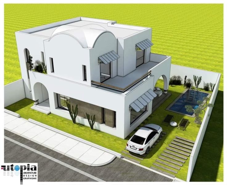 A vendre chez l'agence TPS Immobilière Hammamet, une magnifique villa avec piscine, bien située à l'entrée d’Hammamet et proche de toutes les commodités
