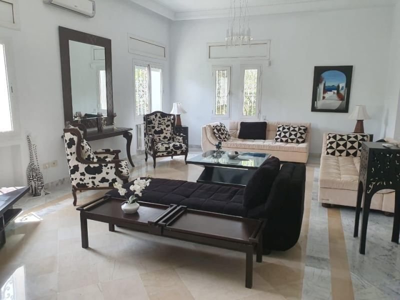 A louer pour les vacances chez l'agence TPS Immobilière Hammamet, une magnifique villa avec piscine, bien située à Hammamet – zone club Med dans un quartier chic et résidentiel et à 600 m de la plage.