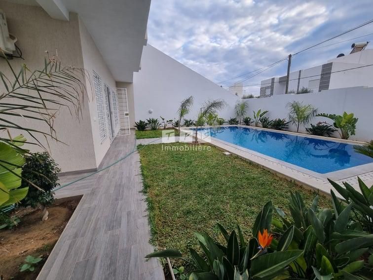 A louer pour les vacances chez l’agence TPS Immobilière Hammamet, une villa moderne avec piscine bien située à Hammamet Nord zone Mrezga.