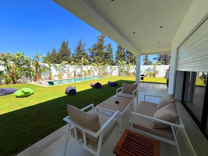 A vendre chez l’agence SMART OWNER immobilière Hammamet, une magnifique villa moderne de plain pieds construite avec des matériaux raffinés, bois noble, sanitaire de qualité, situé dans un quartier bien sécurisé à Hammamet Sud zone Sidi Hammed.