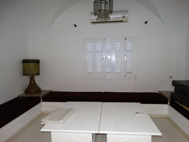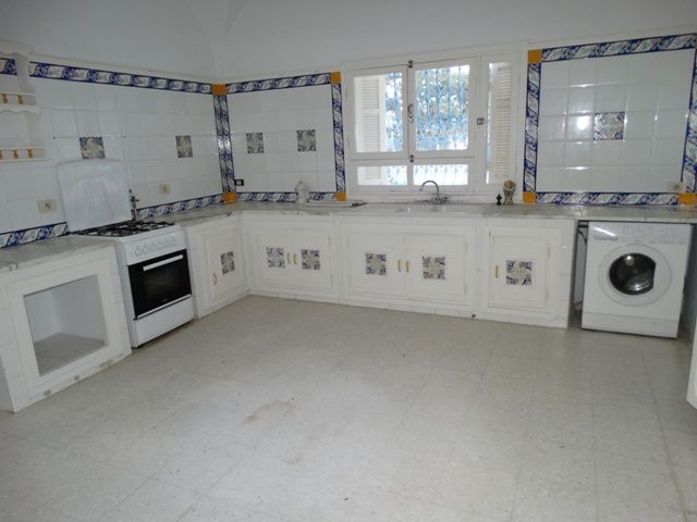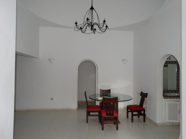 A louer pour des courte durée chez l'agence TPS immobilière Hammamet, une villa de style arabe avec les voûtes, les arcades et la coupole, située dans un quartier résidentiel à Hammamet Nord-Kharrouba.