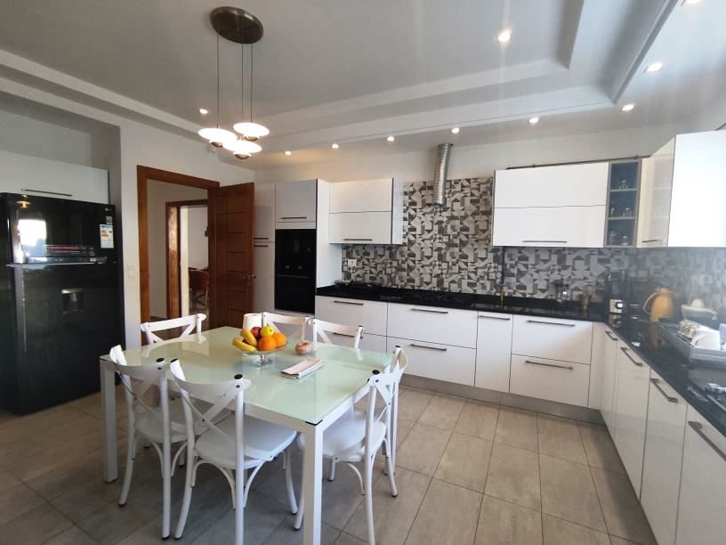 La villa est érigée sur deux niveaux, et elle se compose au rez-de-chaussée d’un hall, un grand salon, un séjour avec un coin cheminée, un joli comptoir bar, une chambre à coucher, une belle cuisine super équipé et une salle de bain.