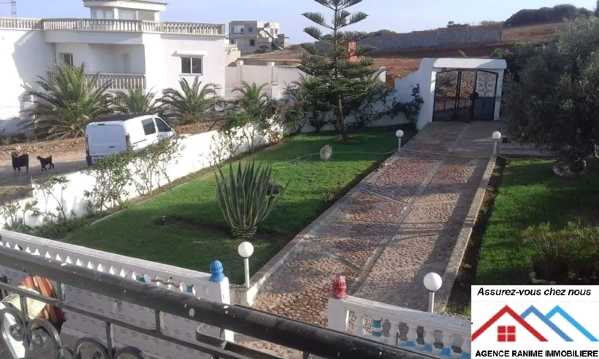 *au rdc de grand salon qui s'ouvrent sur le jardin, salle à manger, deux chambres à coucher, cuisine spacieuse bien équipée, une salle de bain + cave + belle véranda orienté par la mer.