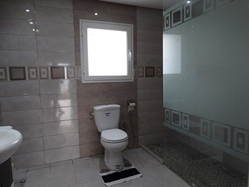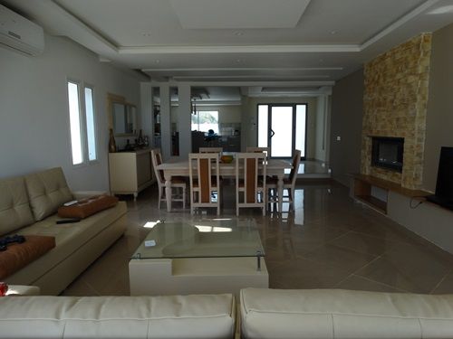 la villa se compose d'un salon avec un cheminée, salle à manger, deux chambres à coucher avec une salle d'eau commune, une suite parentale avec une magnifique salle de bain et un vaste dressing et une cuisine bien équipée.