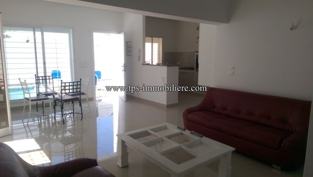 elle est composé d’un salon, deux chambres a coucher, une cuisine bien équipée, une salle de bain.