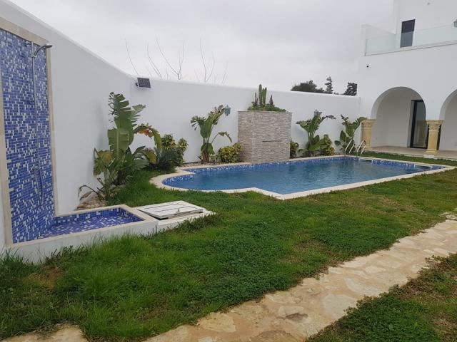 A vendre chez l'agence TPS Immobilière Hammamet, une belle villa avec piscine construite sur deux niveaux, très bien située à Hammamet zone Miramar.