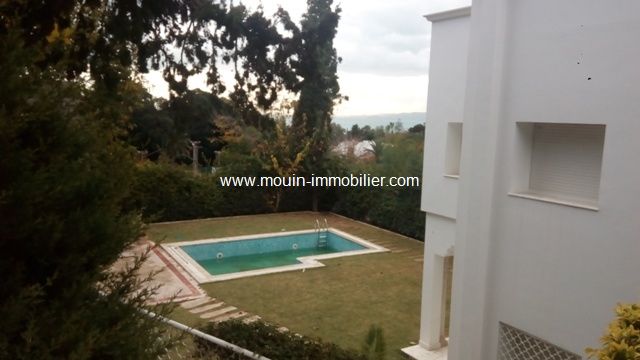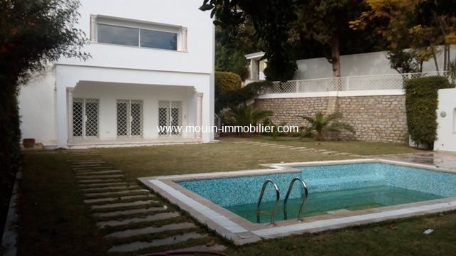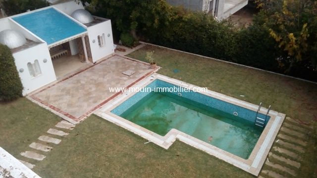 La propriété est équipée de chauffage central, de climatisation et elle dispose d’un garage, une magnifique piscine et un beau jardin gazonné et aménagé d’un barbecue. Prix : 9000 DT/mois