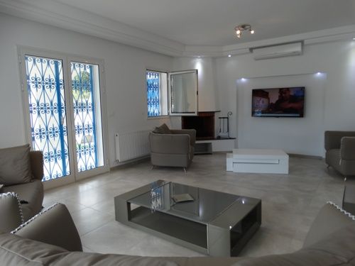 A vendre chez l'agence TPS immobiliére Hammamet, une belle demeure de plain pied avec un style arabesque moderne, bien située à Yasmine Hammamet dans un quartier calme et sécurisé, elle est composé d'un spacieux salon, une cuisine américaine moderne et bien installée, une suite parentale aménagée d’un grand dressing et une salle de bain, deux chambres à coucher avec des dressings et une salle de bain commune. L’entre sol compte un cellier, une chambre de service avec une salle de bain, une loge gardien, un local technique et une place parking. La propriété est équipée de chauffage central et de climatisation et elle dispose d’une belle piscine entourée d’un jardin gazonné et d’une terrasse bien aménagée.