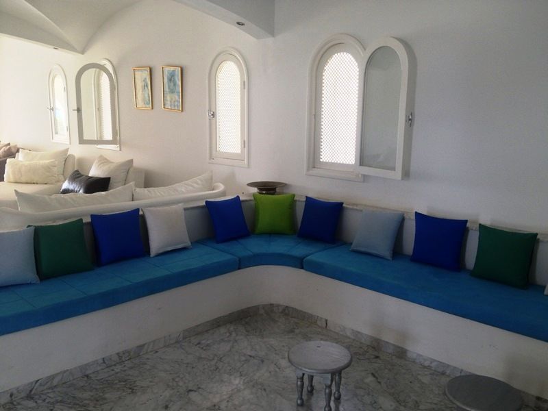 A louer pour courte durée, une très jolie villa pieds dans l’eau située à Hammamet. Joli coin de quiétude pour un séjour des plus agréable à Hammamet dans cette magnifique villa comprenant quatre chambres à coucher, trois salles d’eau, salon et cuisine aménagée. Elle comprend également une terrasse près de laquelle trône un petit bassin alimenté par une fontaine murale, un jardin gazonné et un parking. A noter que la villa dispose de climatiseurs chaud - froid.