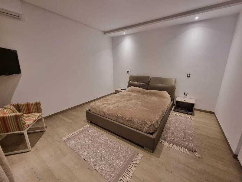La villa est érigée sur deux niveaux, elle comporte au rez de chaussée un salon- salle à manger qui donne sur la piscine, un jardin d’hiver, une chambre à coucher qui donne sur un patio, une salle de douche et une cuisine moderne bien équipée.