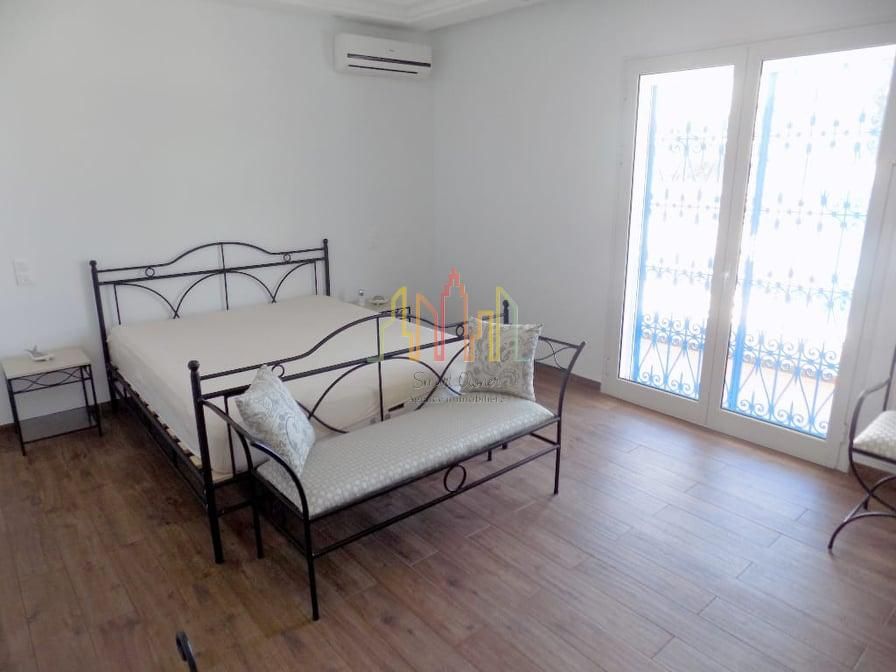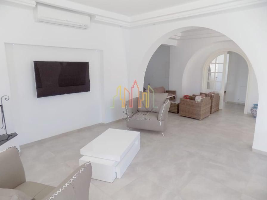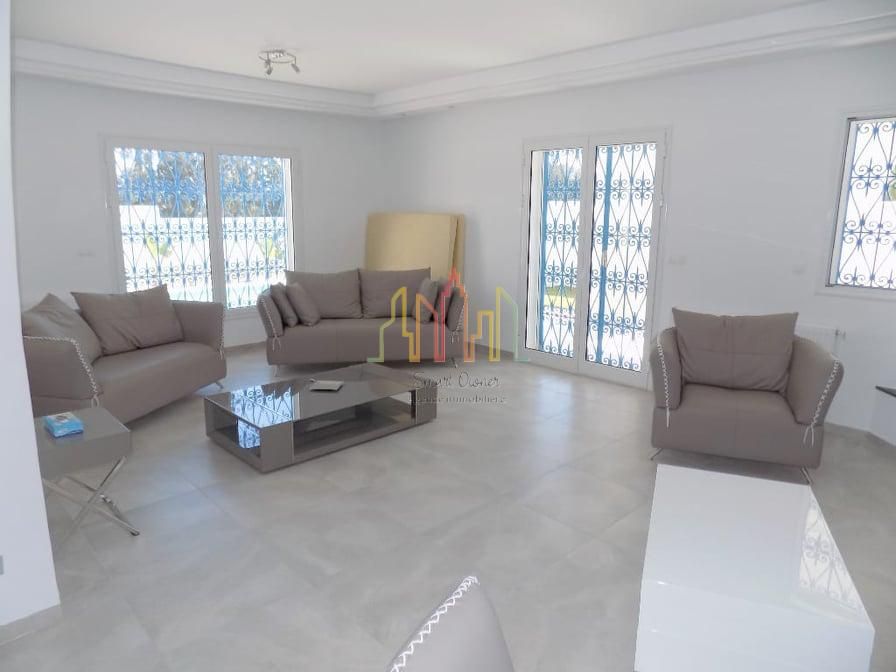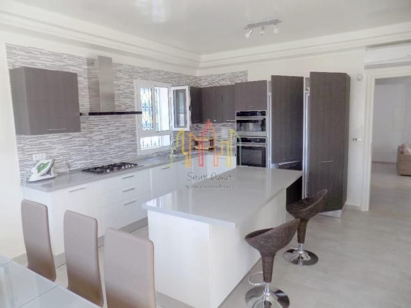 A vendre chez l’agence SMART OWNER immobilière Hammamet, une belle demeure de plain pied avec un style arabesque moderne, bien située à Yasmine Hammamet dans un quartier calme et sécurisé, elle est composé d’un spacieux salon, une cuisine américaine moderne et bien installée, une suite parentale aménagée d’un grand dressing et une salle de bain, deux chambres à coucher avec des dressings et une salle de bain commune. L’entre sol compte un cellier, une chambre de service avec une salle de bain, une loge gardien, un local technique et une place parking. La propriété est équipée de chauffage central et de climatisation et elle dispose d’une belle piscine entourée d’un jardin gazonné et d’une terrasse bien aménagée.