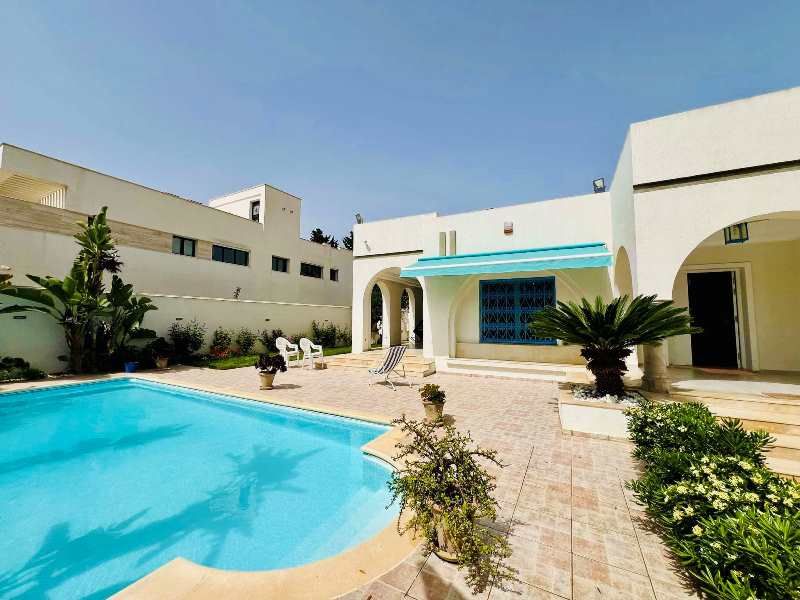 A vendre chez l’agence SMART OWNER immobilière Hammamet, une belle demeure de plain pied avec un style arabesque moderne, bien située à Yasmine Hammamet dans un quartier calme et sécurisé, elle est composé d’un spacieux salon, une cuisine américaine moderne et bien installée, une suite parentale aménagée d’un grand dressing et une salle de bain, deux chambres à coucher avec des dressings et une salle de bain commune. L’entre sol compte un cellier, une chambre de service avec une salle de bain, une loge gardien, un local technique et une place parking. La propriété est équipée de chauffage central et de climatisation et elle dispose d’une belle piscine entourée d’un jardin gazonné et d’une terrasse bien aménagée.