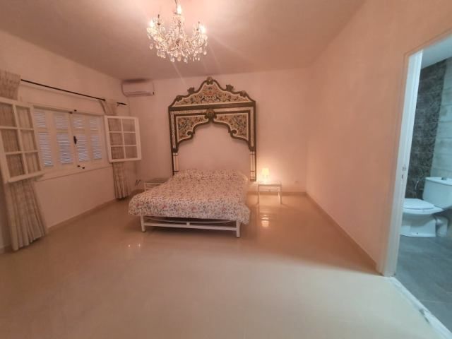 A louer à l'année chez l'agence TPS Immobilière Hammamet, une belle villa meublée avec un style architectural arabesque sur une superficie bâtie de 350 m², située dans un quartier chic et résidentiel à Hammamet Nord - zone Résidence Janet à 3 minute de la mer.