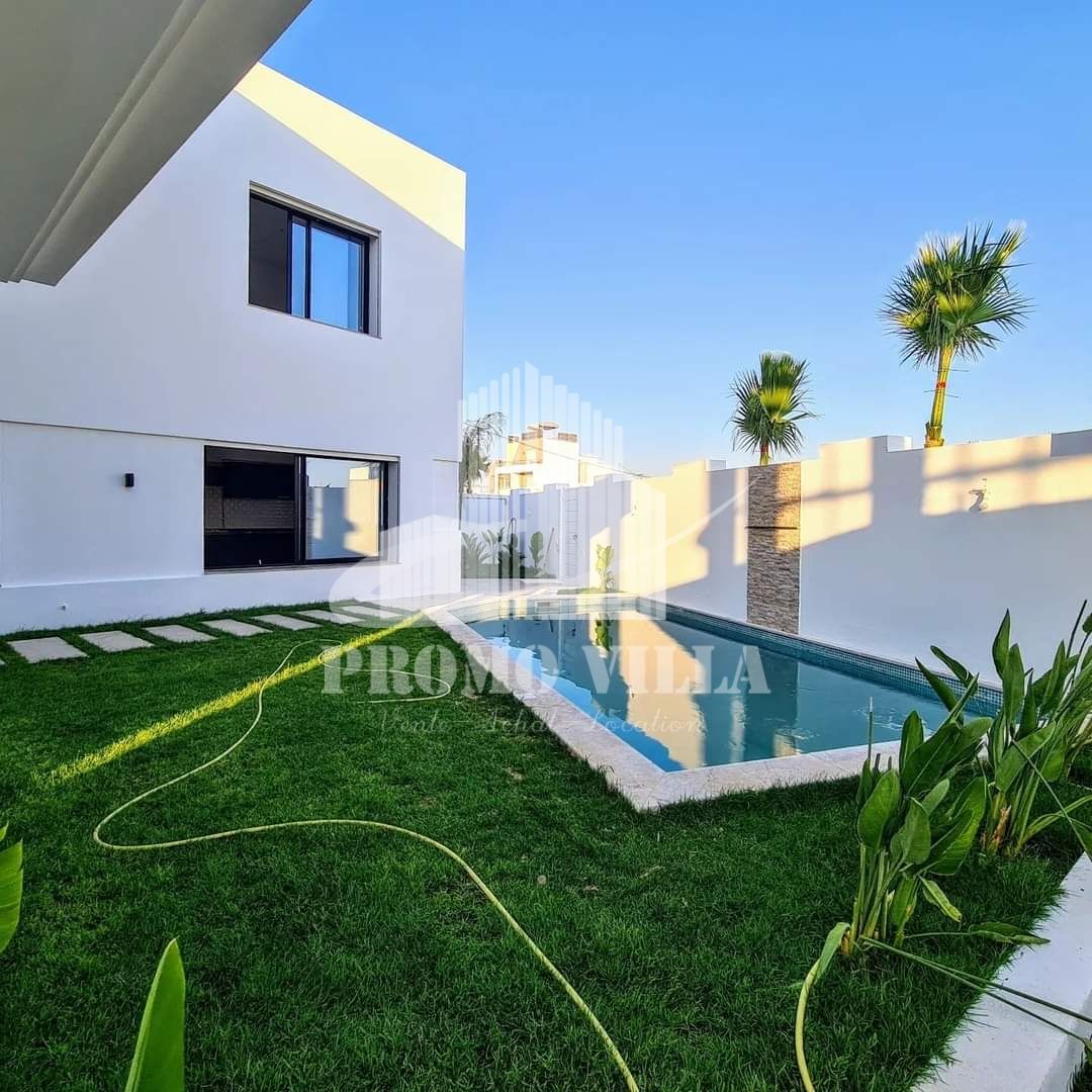 A vendre Chez Promo Villa immobilière, Cette villa situé à Hammamet centre à coté théâtre(loin 700m de plage) , elle se distingue par son style moderne, L'entrée bénéficie d'un jardin gazonné qui offre plusieurs espaces de détente dispose d’une piscine. Au réez de chausser se trouve un salon spacieux grâce ses grandes ouvertures et une chambres à coucher avec dressings. La cuisine dispose de plusieurs éléments de rangement, une salle à manger, une salle d’eau pour les invitées compléter la partie jour. Un escalier nous mène vers la partie nuit qui se compose de trois suite parentales qui bénéficie chacun d'un dressing et salles de bain. Un abri de voiture.