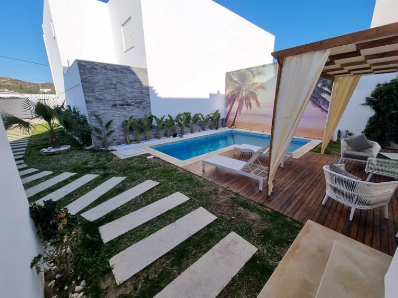 A louer à l’année chez l’agence TPS Immobilière Hammamet, une magnifique villa toute neuve avec piscine, bien située à l’entrée d’Hammamet.