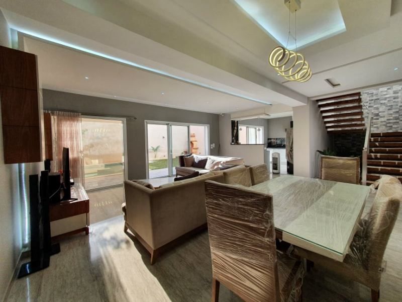 La villa est composée au rez de chaussée d’un grand salon, une cuisine avec des grands baies vitrées donnant sur la piscine, une chambre à coucher et une salle de bain.