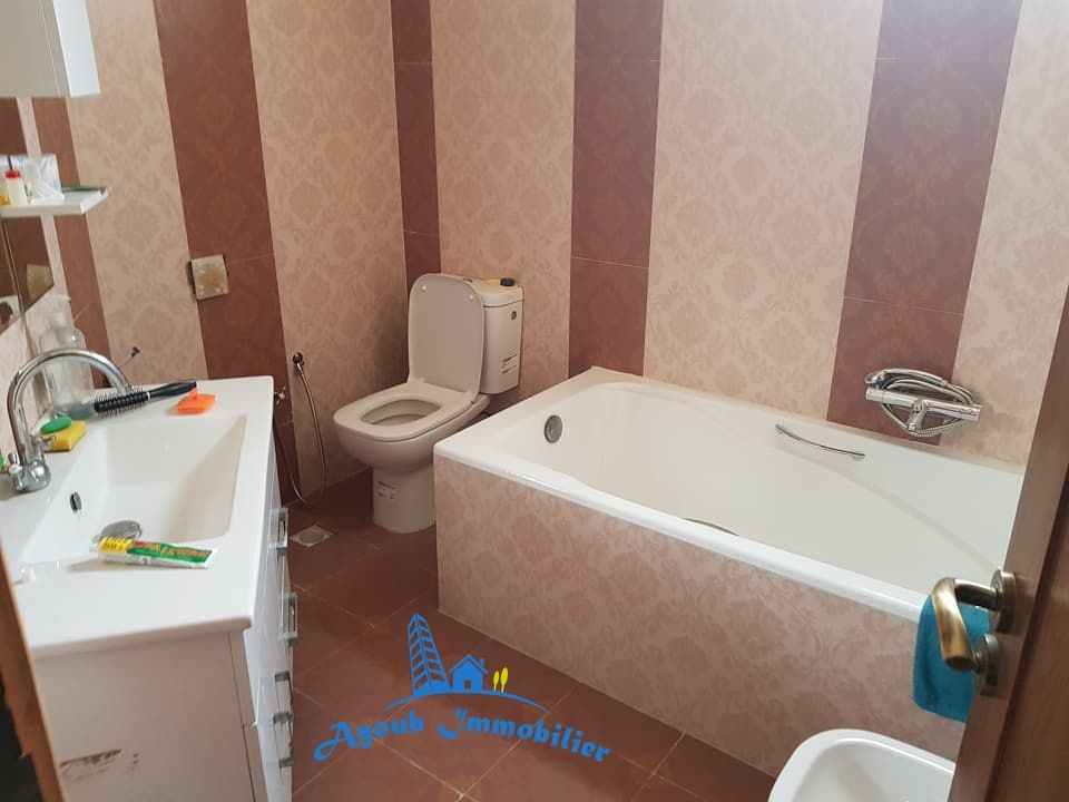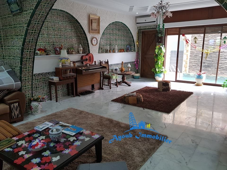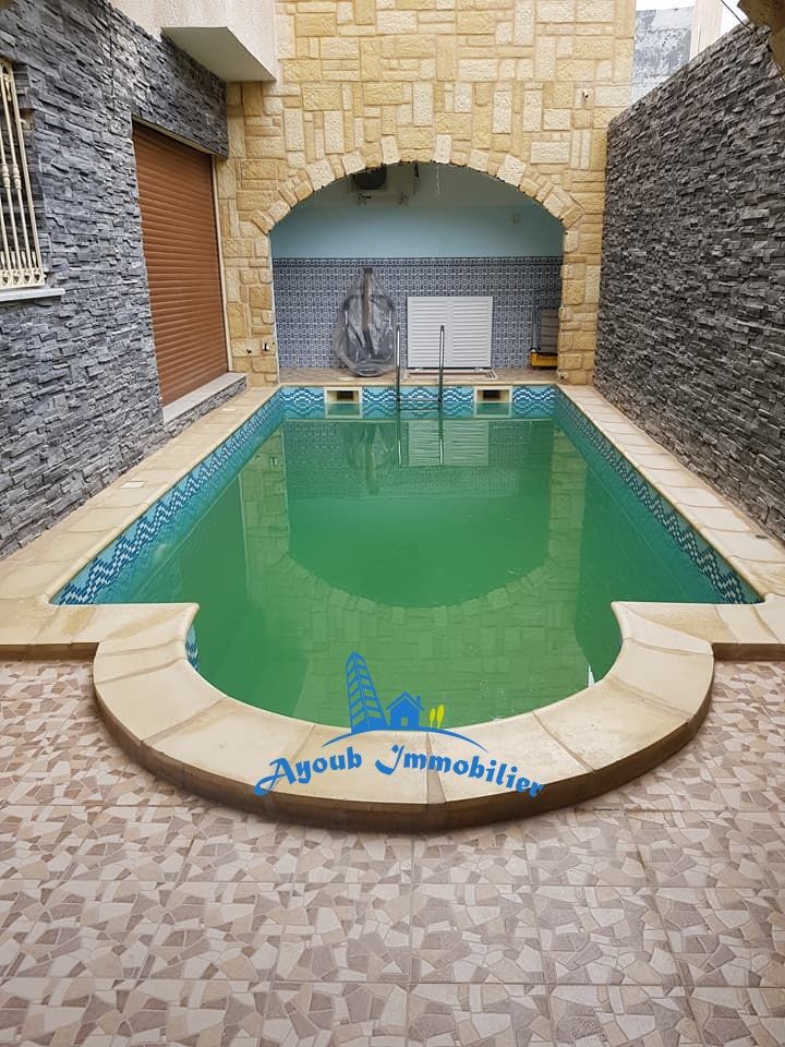 Villa + un appartement à vendre à Afh mrezga, la villa se compose d'un grand salon donnant sur une piscine, 3 grandes chambres, 3 salles de bain, une cuisine équipée et aménagée donnant sur une grande terrasse vers un abri pour 2 voitures, Quant à l'étage on trouve un appartement indépendant composé d'un salon , 2 chambres, cuisine et salle de bain... Ce bien est totalement chauffé et climatisé. Prix 499.000dt.