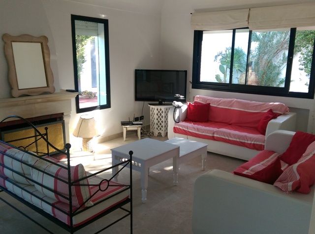 A louer à l'année chez l'agence TPS immobiliere Hammamet, une charmante villa de plain pieds de style arabesque, située à Hammamet-zone théatre.