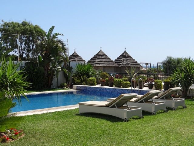 A vendre chez l'agence TPS Immobiliere Hammamet une demeure de charme située à Korba-Africa Jade en face d’une belle plage de sable fin, faite dans un style contemporain sur un fond architectural tunisien qui reflète la splendeur de l’architecture arabo-mauresque. Une villa érigée sur deux niveaux compte un hall d'entrée, une magnifique réception avec deux salons, salle à manger et séjour donnant une pleine vue à la fois sur le jardin, la piscine et la mer, une cuisine bien équipée, une salle d'eau visiteurs, trois suites dont une grande avec une salle de bain et deux avec deux salles d'eau à l'italienne. A l’extérieur on trouve une buanderie et un barbecue. La demeure est équipée de chauffage central, de la climatisation et elle dispose d'un beau jardin gazonné entourant une grande piscine, des belles terrasses et un garage.