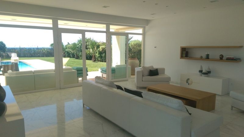 Au rez de chaussée, un salon spacieux avec une vue de mer magnifique et qui donne sur la piscine, une belle cuisine moderne et bien équipée et une salle d'eau d’invités.