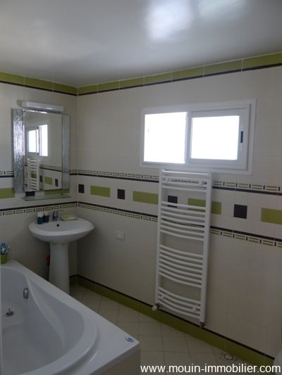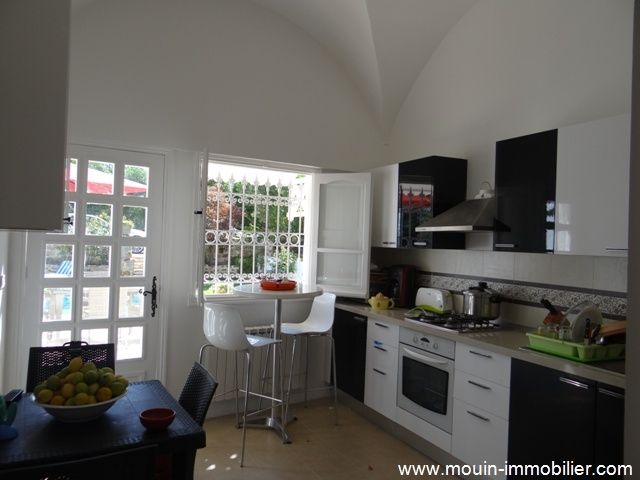 A vendre une charmante villa avec piscine au style arabe contemporain, située à Hammamet – Birbouregba dans un quartier calme et à 10mn du centre ville. Elle offre un salon, une salle à manger, trois chambres à coucher, une cuisine moderne bien équipée et une salle de bain et elle est équipée de chauffage central, d'un système d'alarme, caméras et des baffles intégrés.