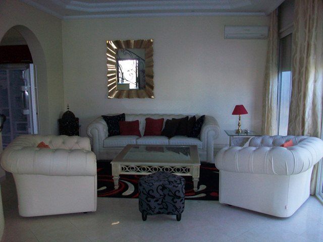 A vendre une superbe propriété située à Yasmine Hammamet. Elle érigée sur deux niveaux et composée de 3 chambre à coucher, un double salon, une cuisine moderne et bien aménagée avec un coin repas, un patio, une salle à manger, un balcon, une salle d’eau et deux salles de bain. La villa est équipée de chauffage central et de climatiseurs. Elle dispose d’un garage, d’une douche extérieure, d’une belle piscine entourée d’un jardin gazonnée et d’une jolie cabane. Le tout sur une surface de 410m². Prix : 1 000 000 DT
