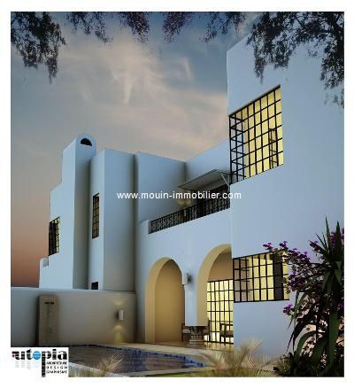 A vendre une villa avec piscine érigée sur deux niveaux, d’une belle architecture arabesque contemporaine et bien située à Yasmine Hammamet, proche de la médina et de Carthage Land.