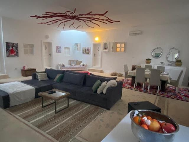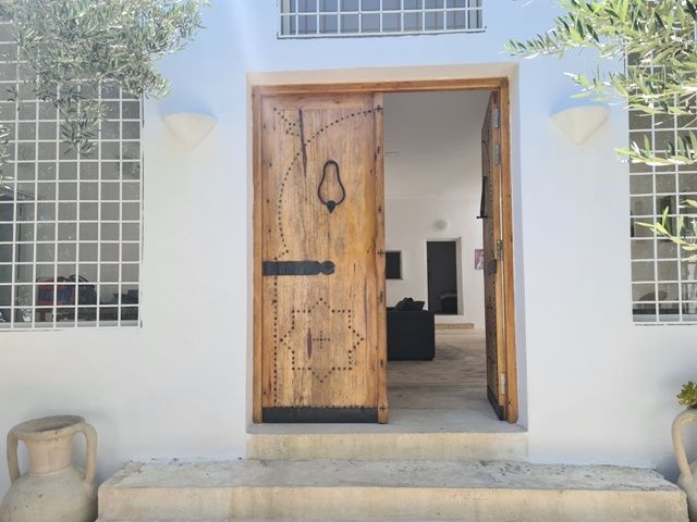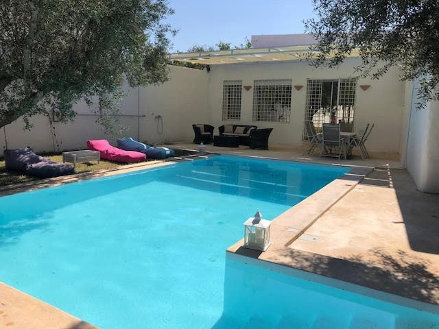 A vendre une villa avec piscine au charme traditionnel avec une belle architecture arabesque, située à Hammamet – Zone Faouara dans un quartier calme, verdoyant et accessible à la route ceinture.