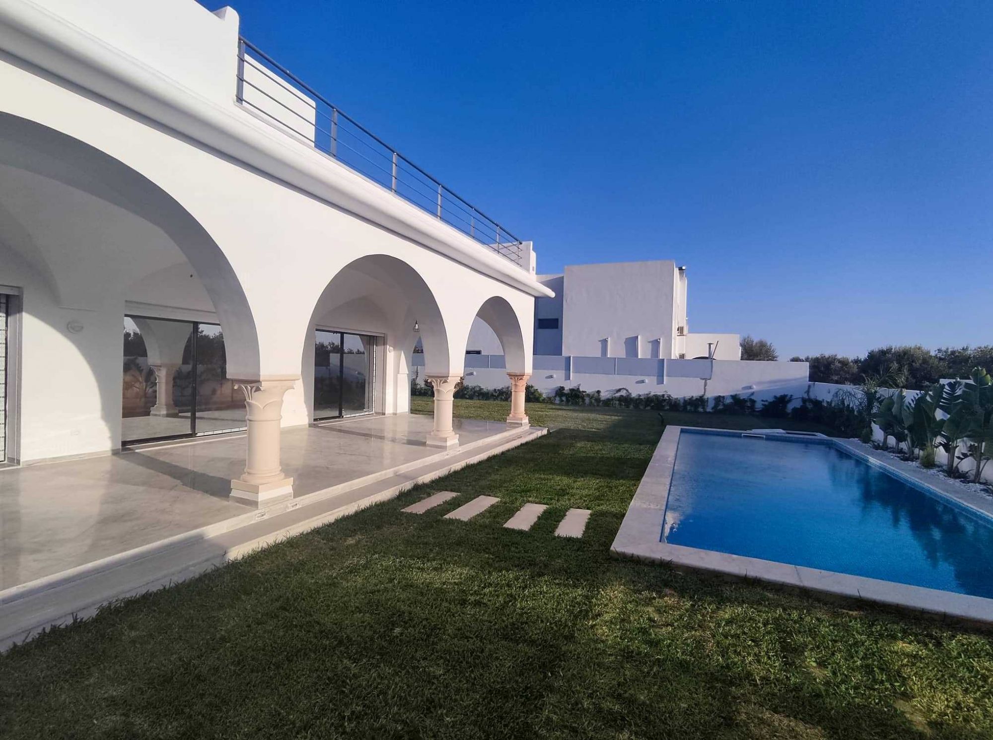 A vendre chez l’agence SMART OWNER immobilière Hammamet, une superbe villa de très haut standing nouvellement construite avec des matériaux raffinés, bois noble, sanitaire de qualité, située à 8 km d’Hammamet et pas loin de la zone sidi Hamed, un mélange entre le style contemporain et traditionnel.