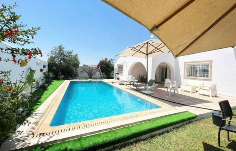 A louer pour vos vacances chez l’agence SMART OWNER immobilière Hammamet, une belle villa de plain pied avec piscine, bien située à Hammamet Sud « Sidi Hammed» à 5 minutes de Yasmine Hammamet.