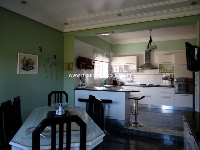 La villa est composée d’un spacieux salon avec un coin cheminé, deux suites, deux chambres à coucher, une chambre de bonne, une cuisine bien équipée avec un coin salle à manger s’ouvrant sur une belle terrasse et une salle d’eau.