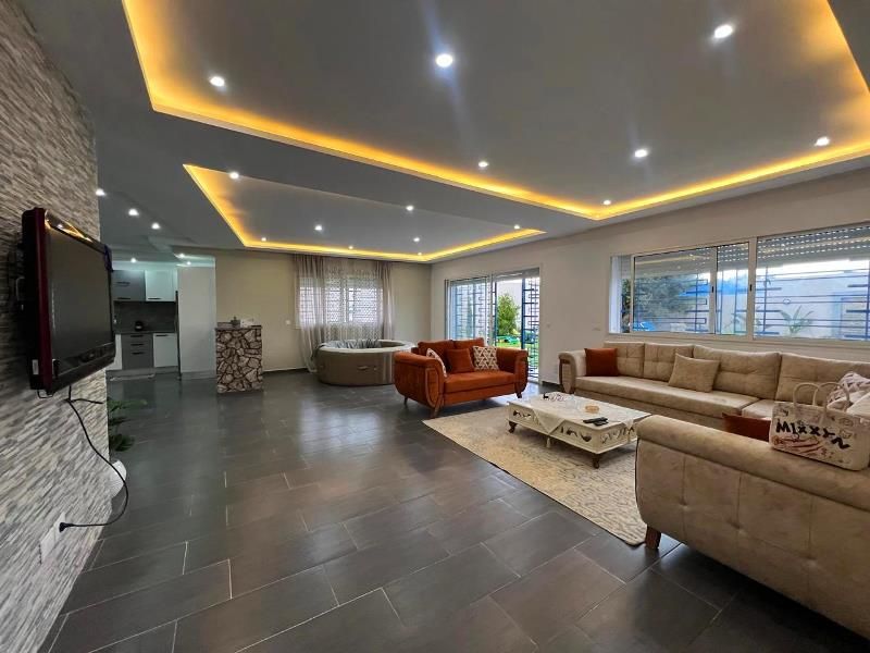 Le rez de chaussée se compose d’un spacieux et lumineux salon, une cuisine ouverte bien équipée, une salle à manger, une chambre à coucher et une salle d’eau pour les invités.