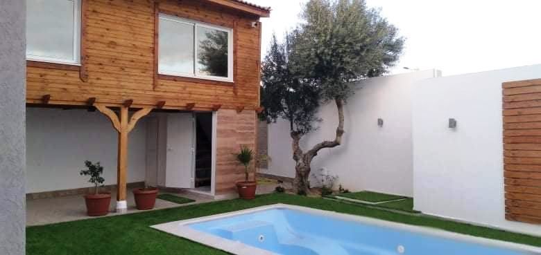 Finalement à l’extérieure, la villa possède une belle piscine , un Abri pour voiture , une grande cabane en bois érigée sur deux niveaux (rez-de-chaussée, une terrasse ouverte sur piscine, 1er étage, une chambre avec dressing).
