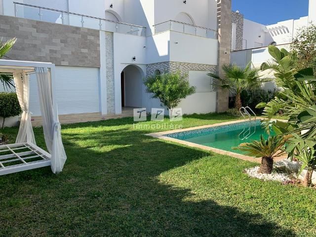 A louer à l’année chez l’agence TPS Immobilière Hammamet, une magnifique villa meublée avec piscine, bien située à l’entrée d’Hammamet.