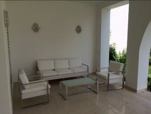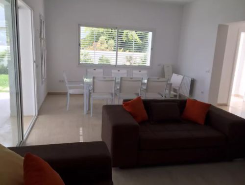 A louer chez notre agence TPS Immobiliere à Hammamet, une belle villa contemporaine toute neuve entièrement meublée située aux deux oueds.