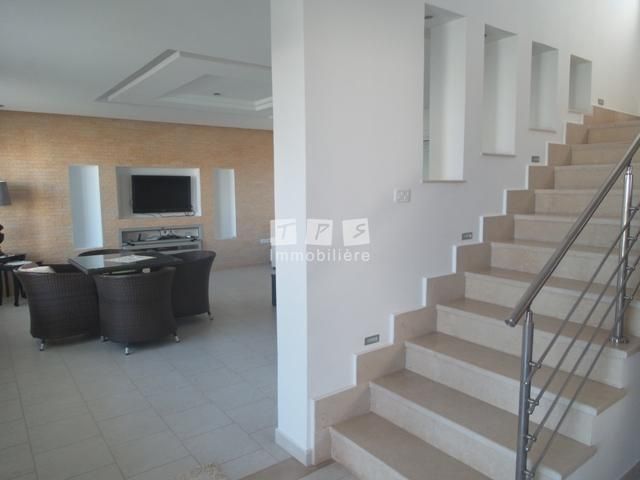 La villa est composé d'un grand salon qui donne sur le jardin et la piscine, une cuisine moderne et bien équipé, une suite parentale, Trois chambres à coucher, une salle de bain, une salle d'eau et une belle terrasse qui donne sur la mer.