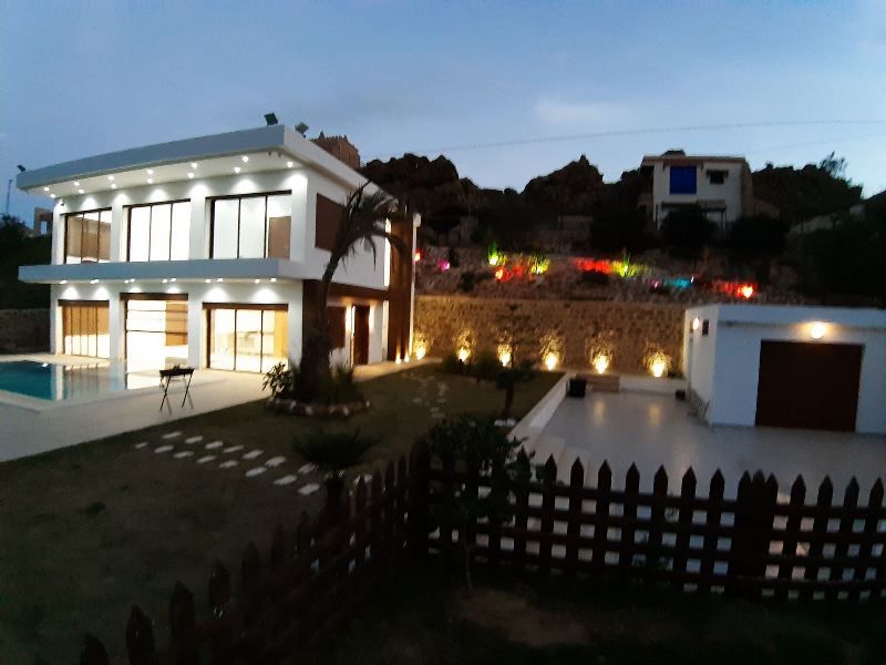 A vendre, Chez notre agence TPS Immobilière, une magnifique villa se dressant en haut de la montagne la vallée d'El Monchar au calme, volupté une grande piscine à débordement qui fait son entrée au salon avec son hydro masseur.