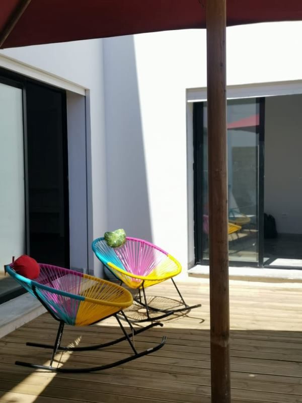 Arrivant au deuxième étage, on trouve une belle terrasse avec une vue sur la mer.