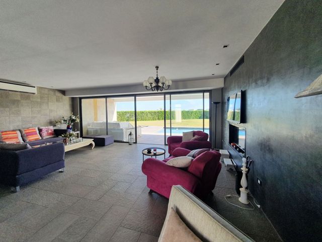 A vendre chez l'agence TPS Immobilière Hammamet, une somptueuse villa de plain-pied située à proximité d'Hammamet sud et de Yasmine Hammamet, très bien orientée sur un beau terrain de 4080 m² clôturé planté et gazonné dont 250 m² couvert, avec une belle piscine débordante sans aucun vis-à-vis.