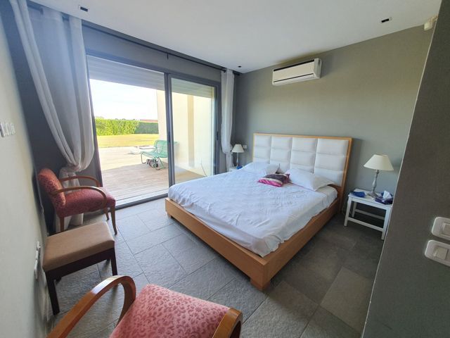 La villa comporte deux grands salons, une salle à manger, une magnifique cuisine moderne bien équipée, deux suites parentales (dressing et salle de bain) et une salle de bain commune.