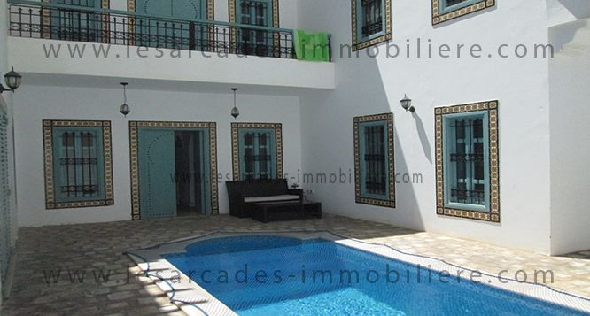 Villa typique distingué par son style traditionnel, avec un entrée indépendant jardin et garage, à 5 min de la mer et de Nabeul centre ville.