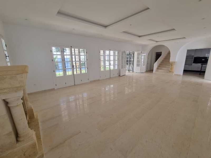 La villa est érigée sur deux niveaux, elle se compose au RDC d’un spacieux salon donnant sur la terrasse comportant une belle cheminée, une suite avec sa propre SDD et dressing, une cuisine aménagée avec ilot central et une salle d’eau pour les invitées.