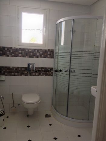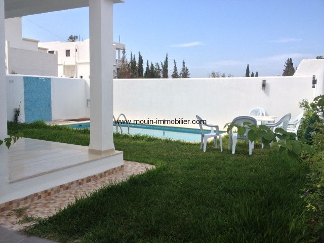 A louer à l'année, une belle villa, toute neuve, située à la corniche d’Hammamet dans un quartier calme et sécurisé et à quelque pas de la plage. Elle est érigée sur deux niveaux et composée d’un salon, cinq chambres à coucher, deux cuisines bien équipées, une salle de bain et deux salles d’eau. La villa dispose d’une piscine entourée d’un jardin gazonné, d’un abri pour voiture et elle est équipée de climatisation et de chauffage central.