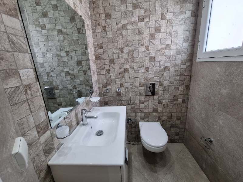 La villa est érigée sur deux niveaux, elle est composée au rez de chaussée d’un salon, une cuisine équipée et une d’eau pour les invitées.