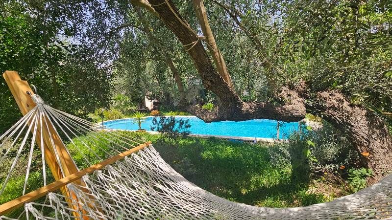 Vous pourrez profiter d'une grande terrasse et d'une piscine étincelante entourée d'un magnifique jardin planté d'agrumes et de diverses plantes luxuriantes, avec un hamac parfait pour se détendre au milieu de la verdure.
