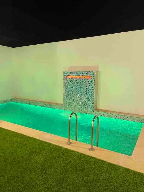 A l’extérieur, vous bénéficiez d’un joli jardin gazonné, une belle piscine avec cascade, un coin barbecue ainsi qu’un parking pour les voitures.