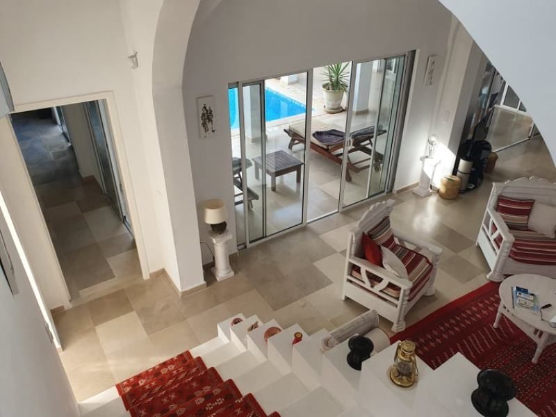 A vendre chez l'agence TPS Immobilière à Hammamet, une magnifique villa disposant d'une piscine chauffée avec une pompe à chaleur et bien située zone hôtel Ribat et proche de toutes les commodités.