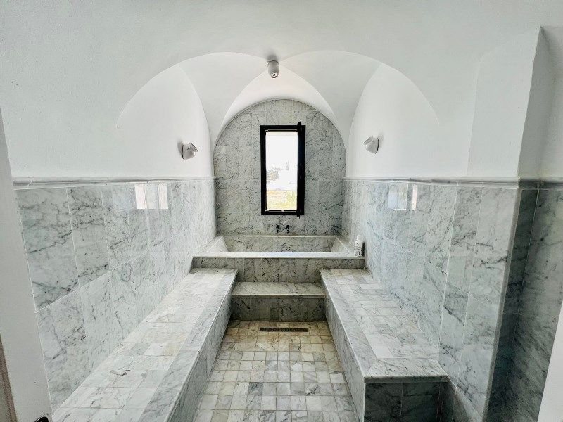 Quant à l’étage, il se compose d’une suite parentale, deux suites juniors et un grand balcon qui communique entre deux suites, une terrasse et un Hammem.