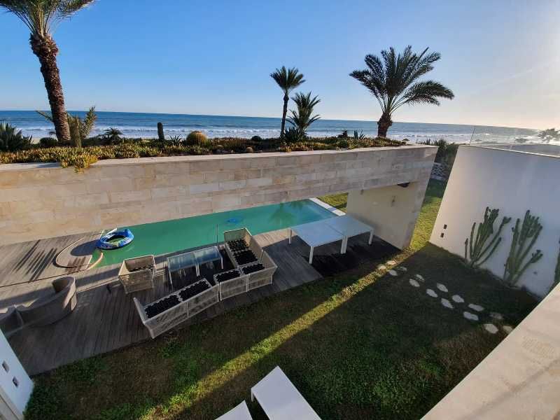 A louer pour le mois Aout, chez l'agence TPS Immobilière Hammamet, une somptueuse villa avec piscine idéalement située en front de mer au calme d’un quartier résidentiel à Hammamet Nord.